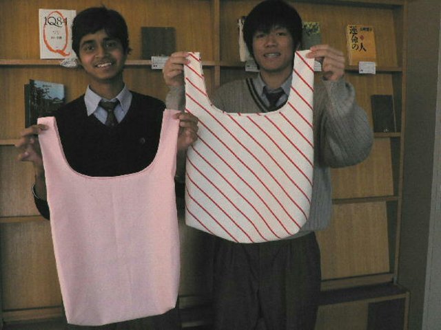 割り箸を一切使わない、お土産も、生徒が自分で作ったマイバッグに入れて、